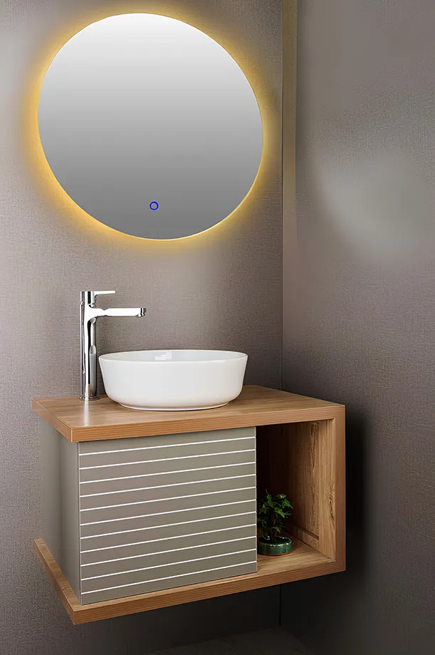 آینه دایره‌ای تاچ LED دار نور مناسب برای استفاده روزمره فراهم می‌کند و زیبایی مجموعه را بیشتر می‌نماید.