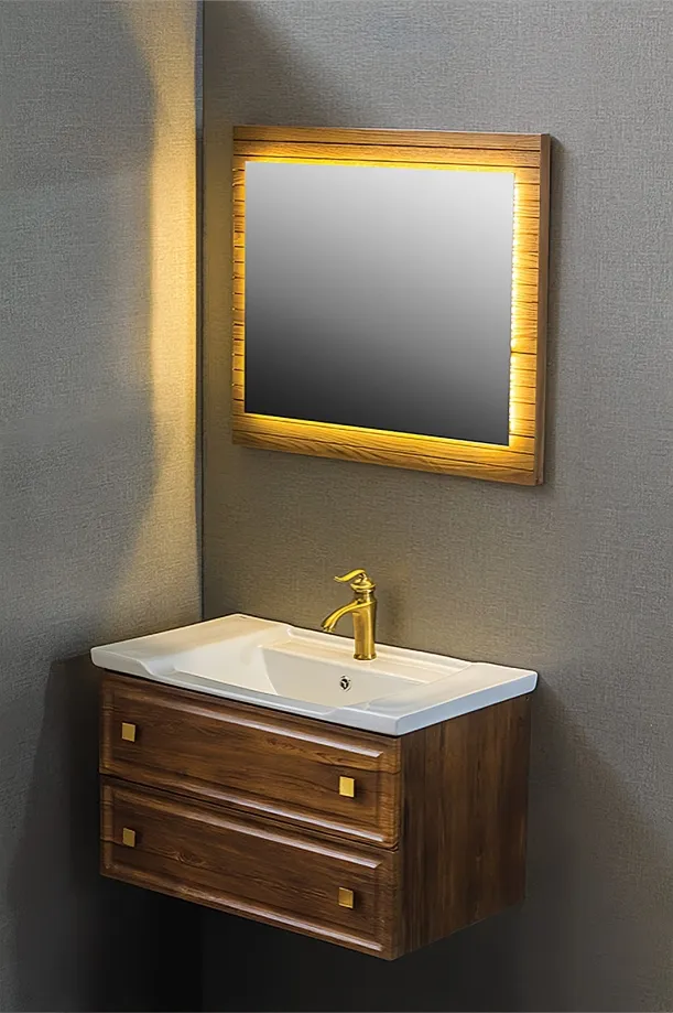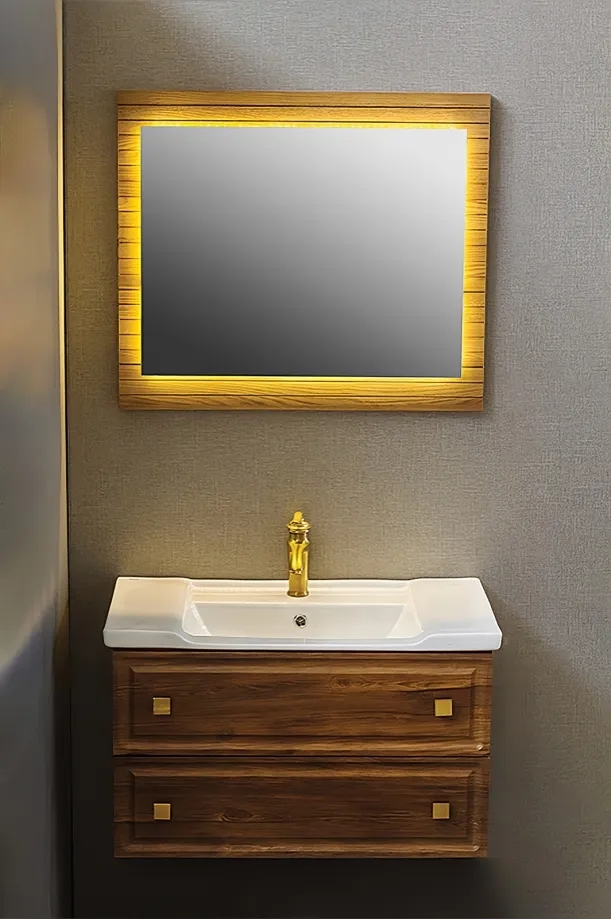 آینه تاچ LED دار، جلوهای مدرن و نورپردازی ملایم به فضای سرویس میبخشد و استفاده روزمره را سادهتر میکند. بدنه ضد آب و اتصالات ضد زنگ، طول عمر و ماندگاری محصول را تضمین میکنند. همچنین، قابلیت سفارشیسازی رنگ و ابعاد کابینت و آینه، این روشویی را برای انواع فضاها انعطافپذیر میسازد.