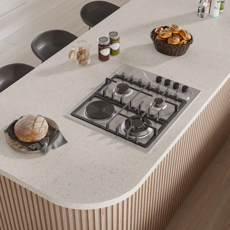 این اجاق گاز دارای سیستم ترموکوپل ایمنی و پایههای مستحکم قابل تنظیم است تا امنیت و پایداری بالایی داشته باشد. طراحی توکار آن باعث میشود به راحتی روی کانتر نصب شده و فضای آشپزخانه مرتب و یکپارچه باقی بماند.