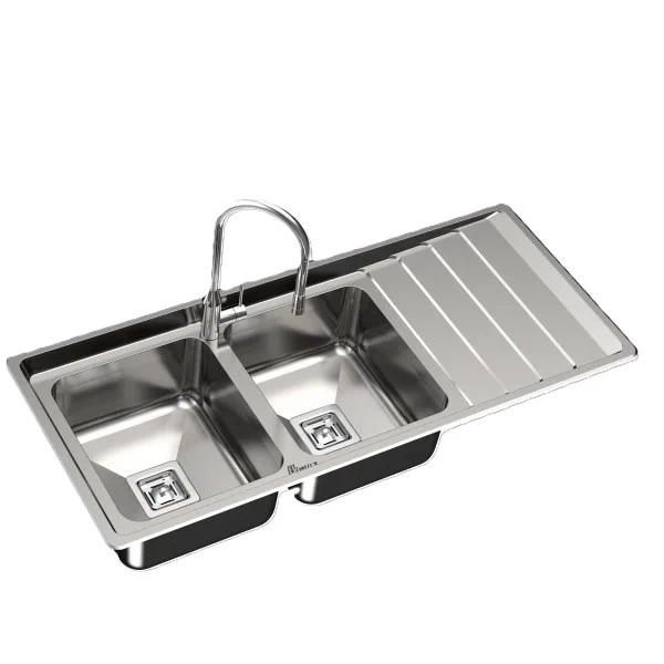 سینک بیمکث مدل 4400 مجهز به سیفون کامل، نوار آببندی و عایق صدا است تا هنگام شستوشوی ظروف، عملکردی آرام و بدون نشتی داشته باشد. طراحی دو لگن این سینک امکان شستوشوی همزمان ظروف کوچک و قابلمههای بزرگ را فراهم میکند.