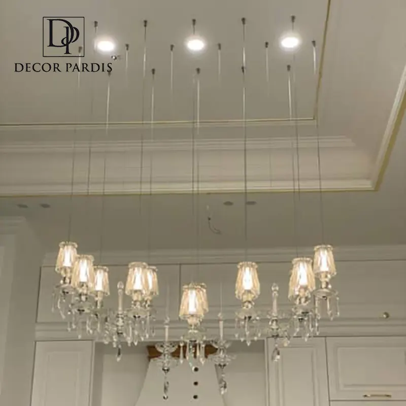 لوستر شاخهای آویز دار گزینهای ایدهآل برای ارتقاء زیبایی و جلوه بصری فضای داخلی است. طراحی منحصر به فرد آن با شاخههای متعدد و آویزهای کریستالی ظریف، نور را بهخوبی منعکس میکند و فضایی پر از جلوه و لوکس ایجاد مینماید.