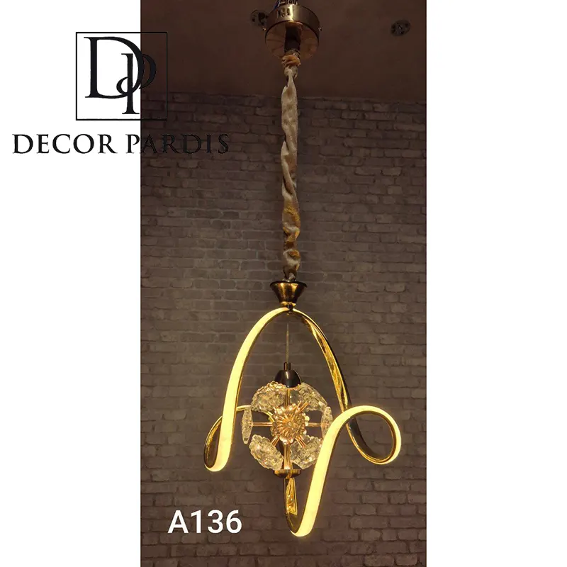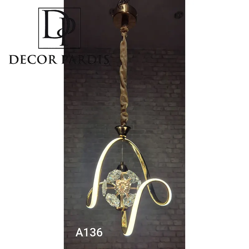 لوستر تک آویز منحنی با ترکیب طراحی مدرن و فرم ارگونومیک، هماهنگی کامل با دکوراسیونهای مینیمال، مدرن و معاصر دارد. جلوه زیبای این لوستر حتی در حالت خاموش نیز به عنوان یک المان دکوراتیو برجسته عمل میکند.