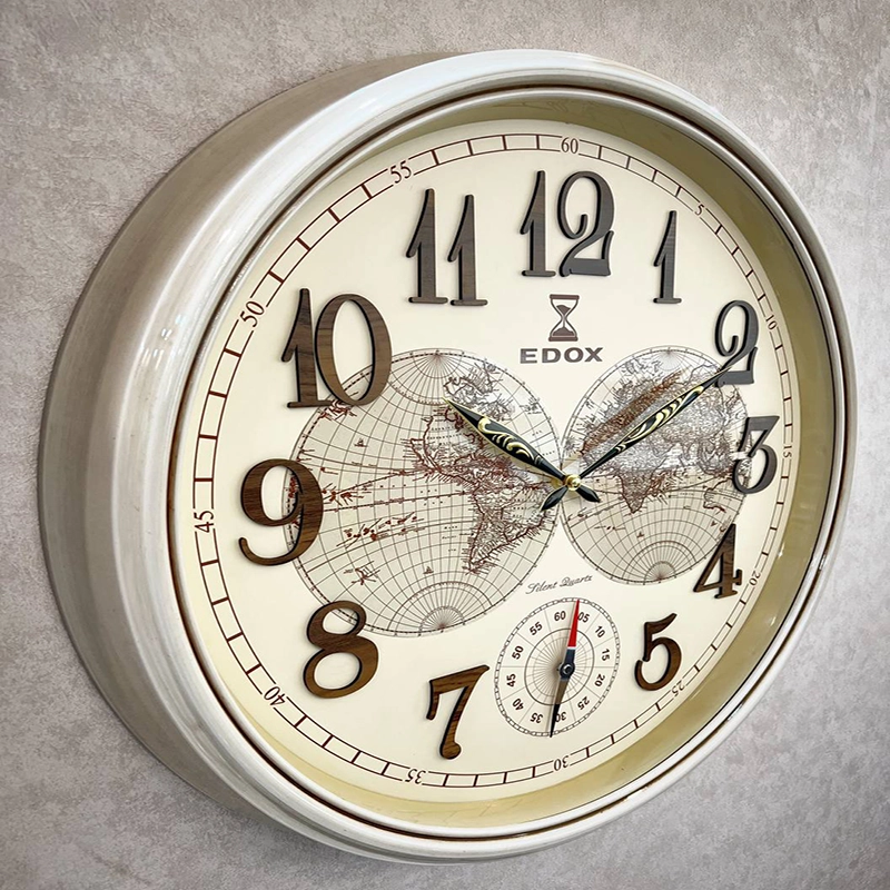 ساعت دیواری جغرافیا رنگ استخوانی کد 625