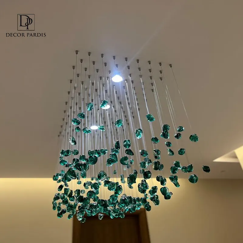 لوستر دست ساز مدل سنگی سبز یشمی ترکیبی از طبیعت، هنر و ظرافت است. رنگ سبز یشمی حس آرامش و اصالت را به فضای داخلی شما می‌آورد. طراحی سنگی لوستر جلوه‌ای منحصربه‌فرد و چشم‌نواز ایجاد می‌کند و با ساخت دست‌ساز، آن را به یک عنصر دکوراتیو برجسته در دکوراسیون مدرن تبدیل می‌کند.
