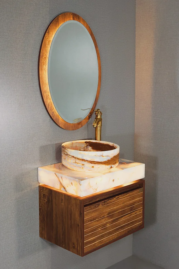 آینه LED و درب جکدار با طرح کرکرهای، ترکیبی از زیبایی و عملکرد کاربردی ارائه میدهند و تجربه استفاده روزمره را بهینه میکنند. بدنه ضدآب و اتصالات کاملاً ضد زنگ، طول عمر و دوام محصول را تضمین میکنند.