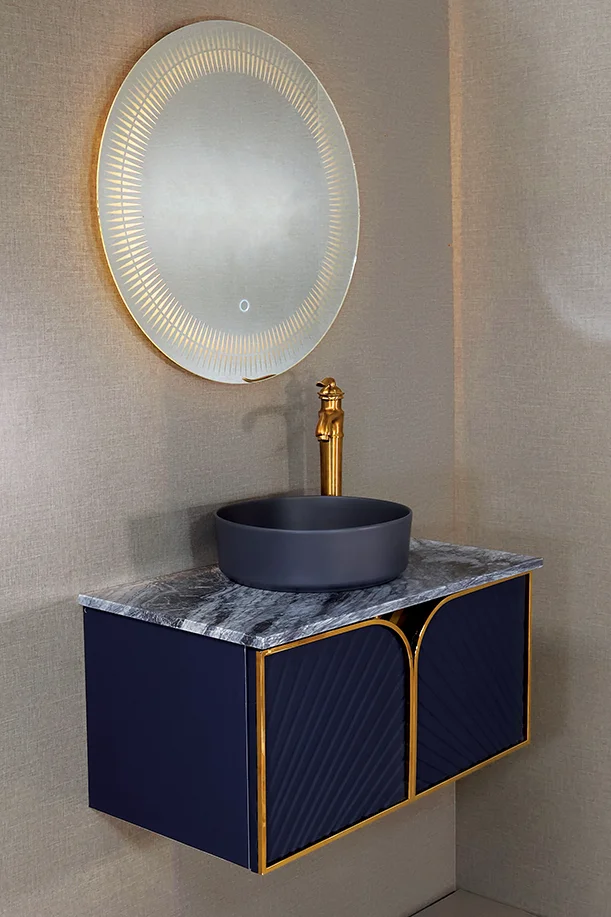 ابعاد پیشفرض کابینت 80×45×35 سانتیمتر و آینه قطر 70 سانتیمتر است که ظاهری هماهنگ و جذاب ایجاد میکنند.