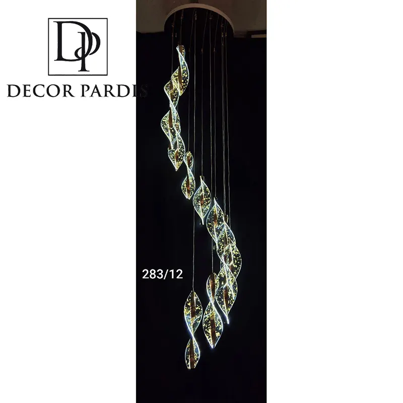 لوستر ریزشی درخشان با فرم ریزشی و طراحی مدرن، هماهنگی کامل با انواع دکوراسیون‌های لوکس و کلاسیک دارد و حتی در حالت خاموش نیز به عنوان یک المان دکوراتیو شاخص عمل می‌کند.