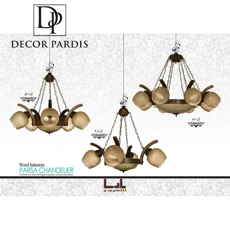 لوستر چوبی چند شعله‌ای یک انتخاب ایده‌آل برای نورپردازی و زیباسازی فضاهای داخلی است که می‌تواند جلوه‌ای کلاسیک و مدرن به منزل یا محل کار شما ببخشد. طراحی چند شعله‌ای این لوستر امکان نوردهی یکنواخت و ایجاد فضایی گرم و دلنشین را فراهم می‌کند.